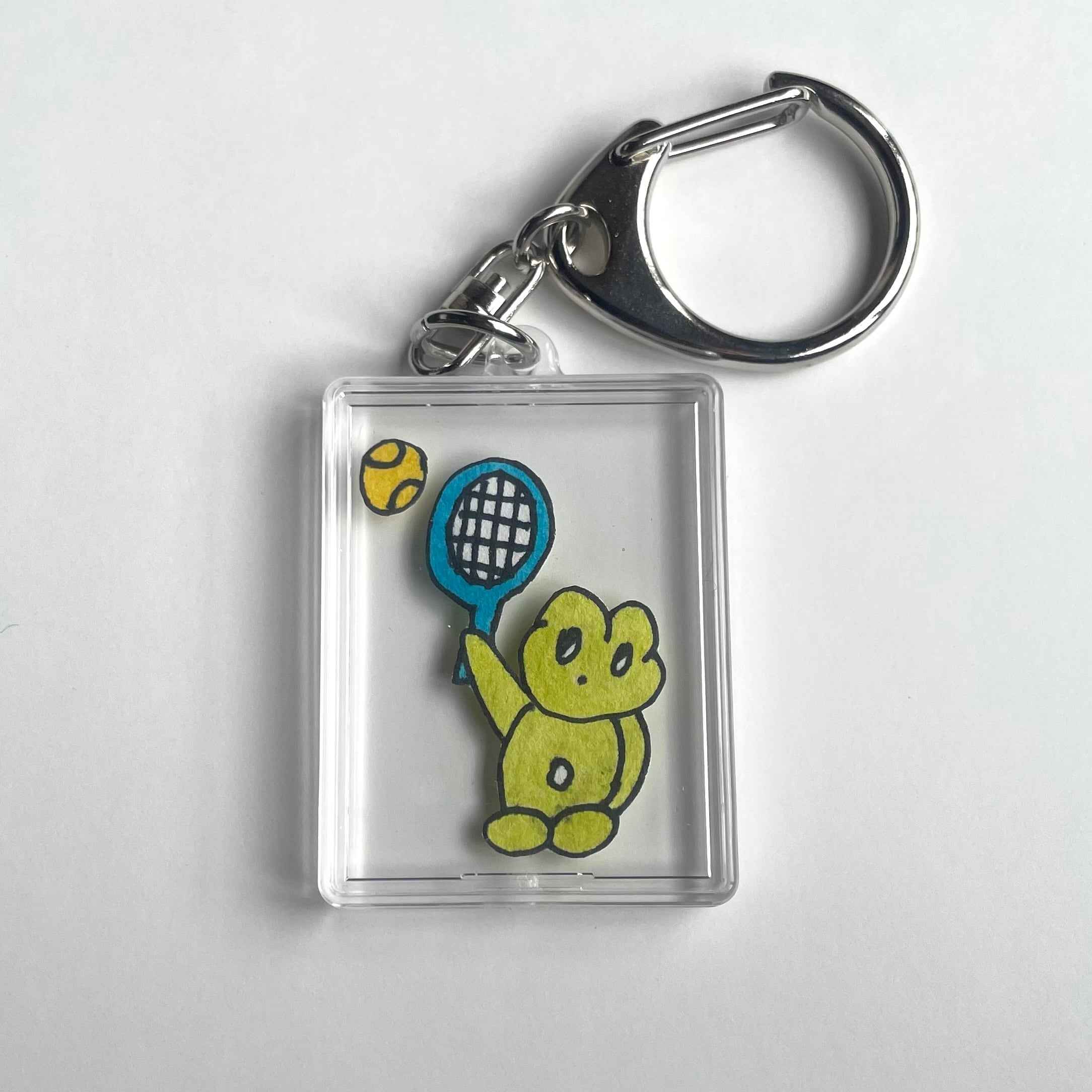 透明手描キーホルダー: テニスサーブのカエルッチ